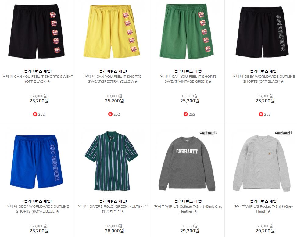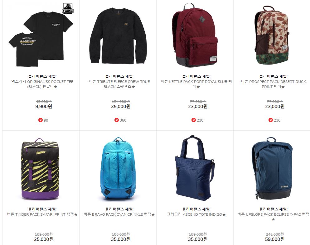 할인 품목 : 백팩, 티셔츠, 팬츠 등