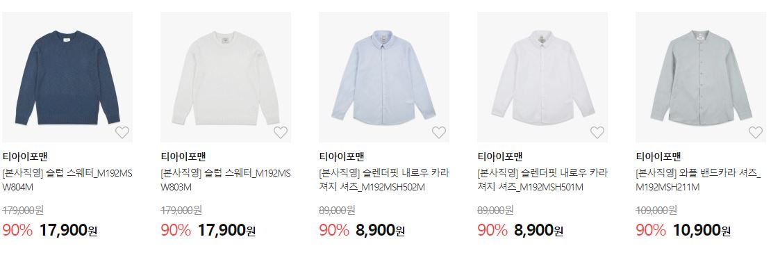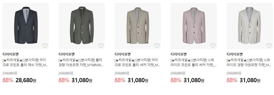 할인 품목 : 자켓, 티셔츠, 팬츠 등