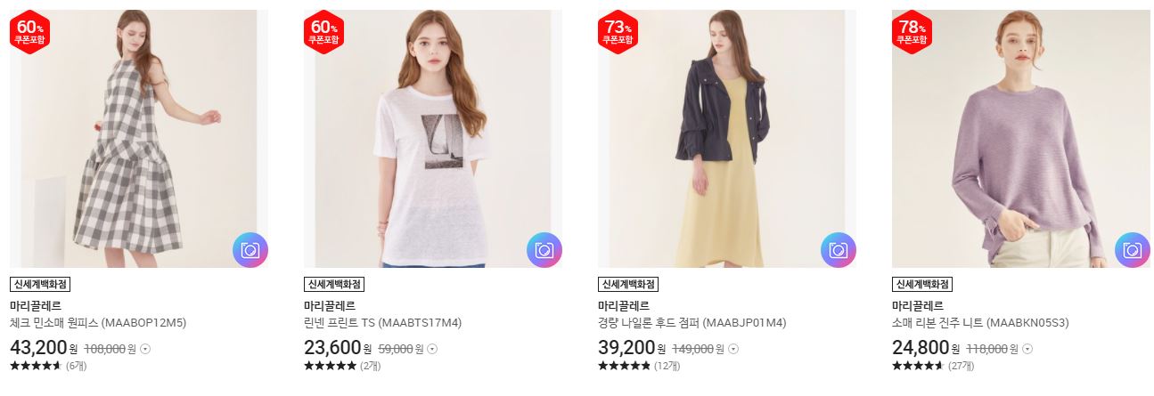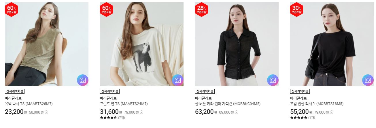할인 품목 : 티셔츠, 원피스, 블라우스 등
