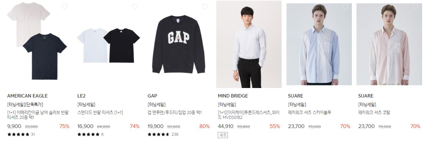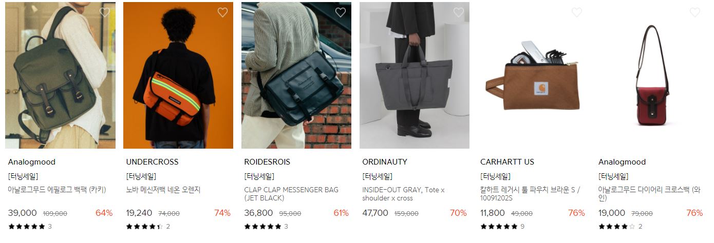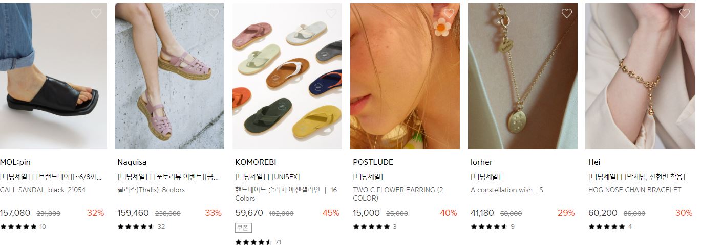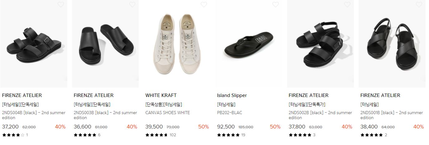 할인 품목 : 티셔츠, 샌들, 가방 등