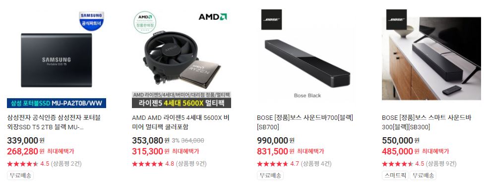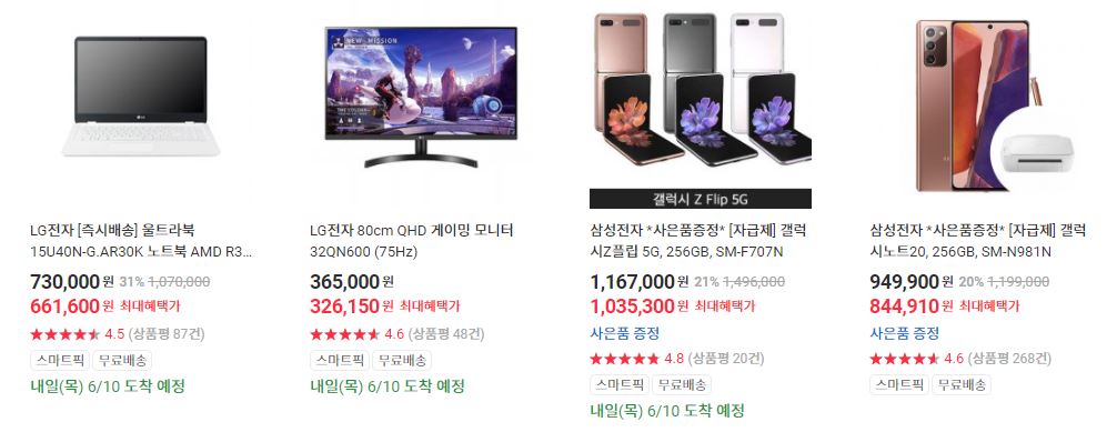 할인 품목 : 휴대폰, 노트북, 모니터 등