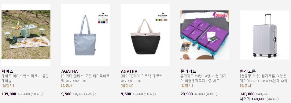 할인 품목 : 가방, 지갑 등