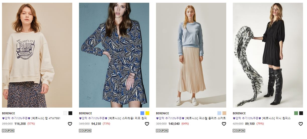 할인 품목 : 티셔츠, 자켓, 원피스 등