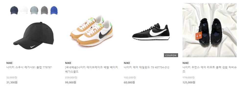 할인 품목 : 운동화, 티셔츠, 모자 등