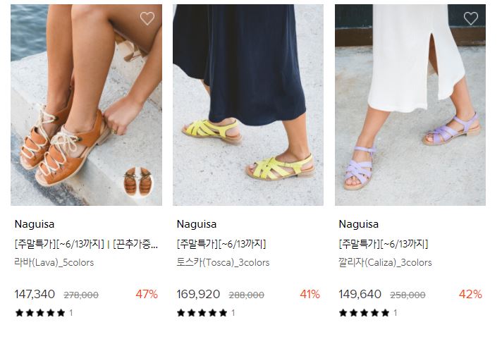 할인 품목 : 샌들, 운동화 등