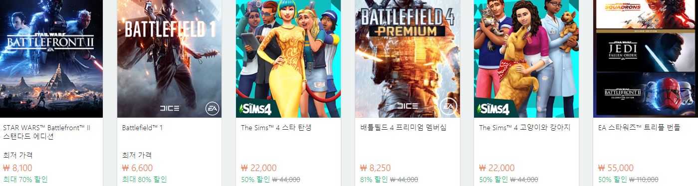EA 다양한 게임을 할인 판매하네요.