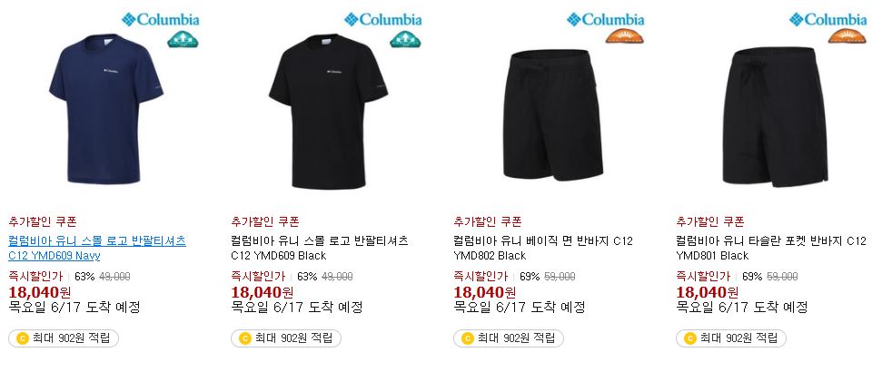 할인 품목 : 샌들, 티셔츠, 팬츠, 가방 등