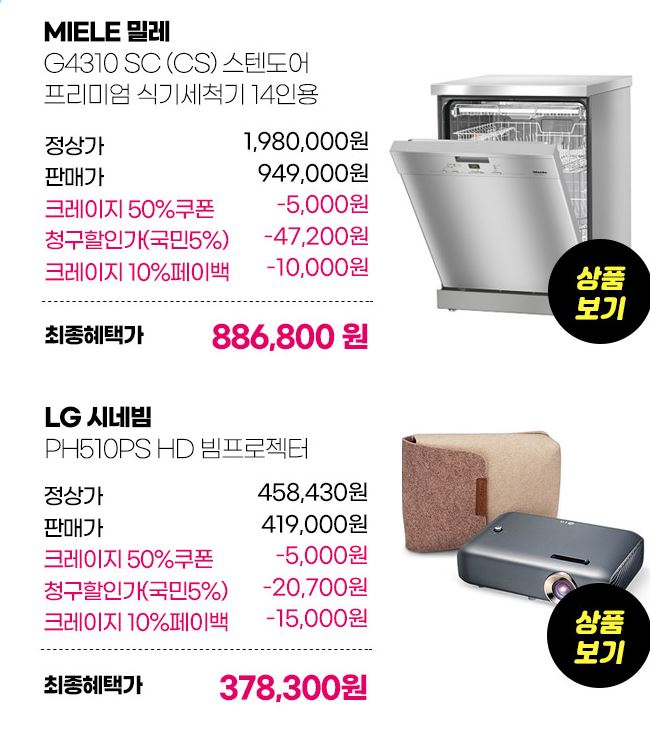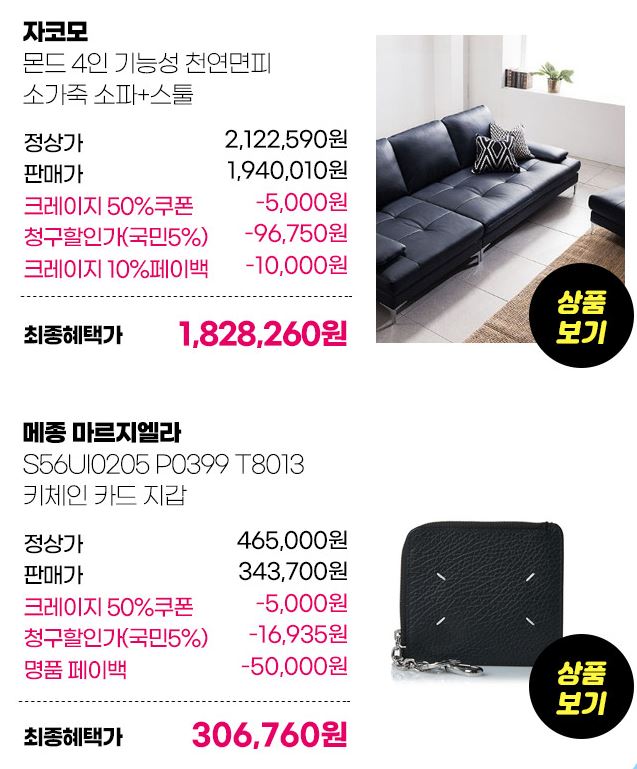 할인 품목 : 의류, 가전, 가방, 신발 등