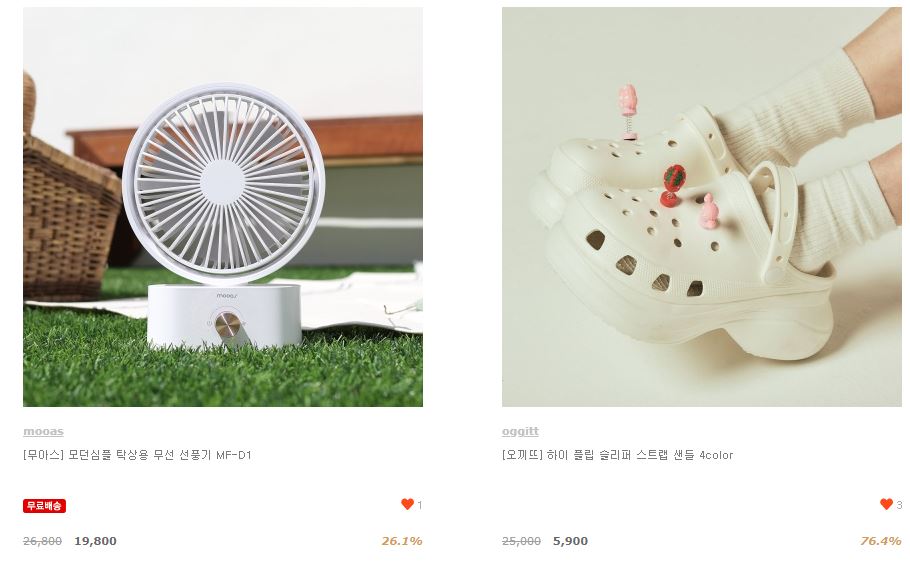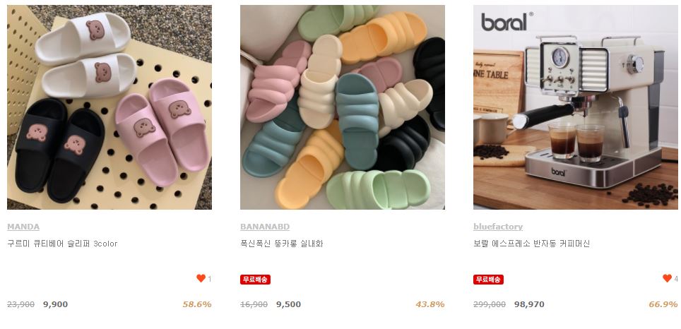할인 품목 : 선풍기, 커피머신, 슬리퍼 등