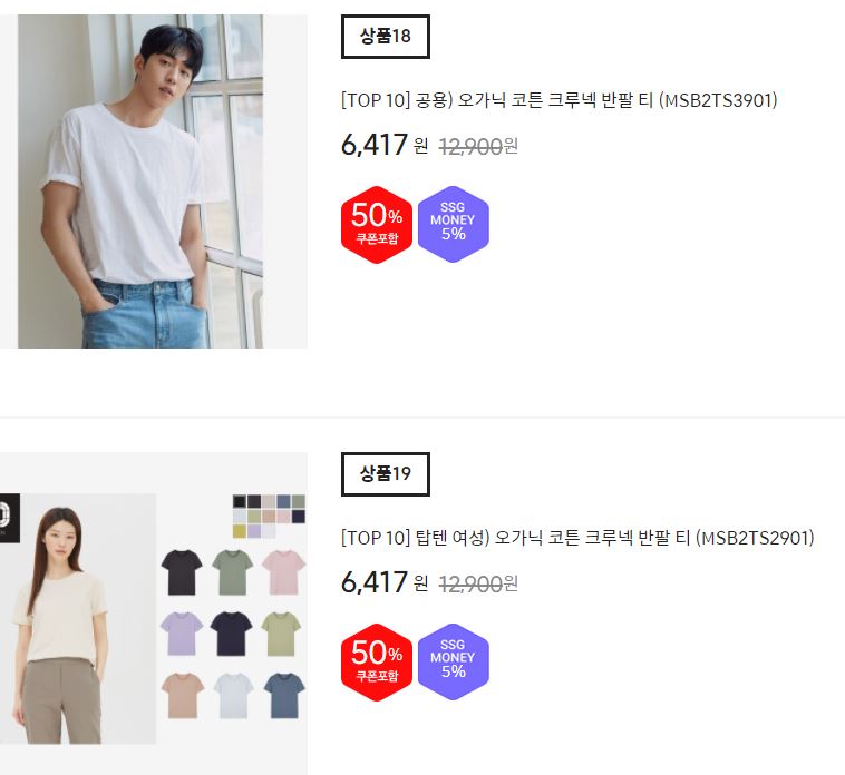 할인 품목 : 티셔츠, 셔츠, 팬츠 등