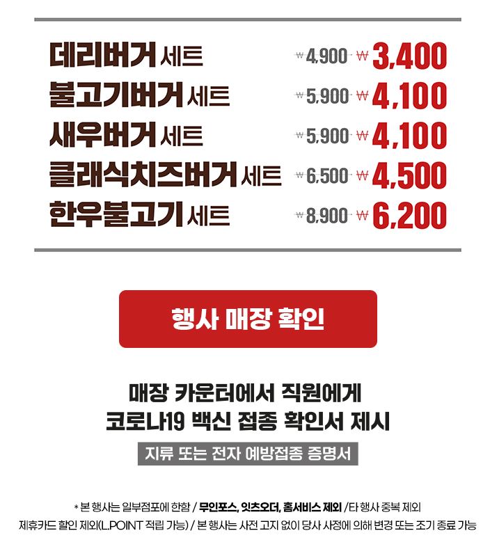 할인 품목 : 데리버거세트, 새우버거세트 등