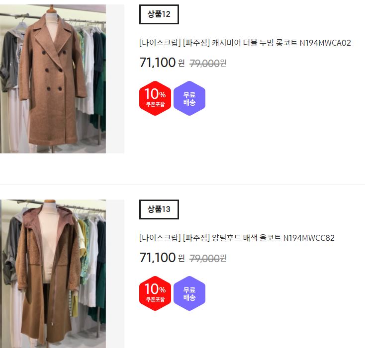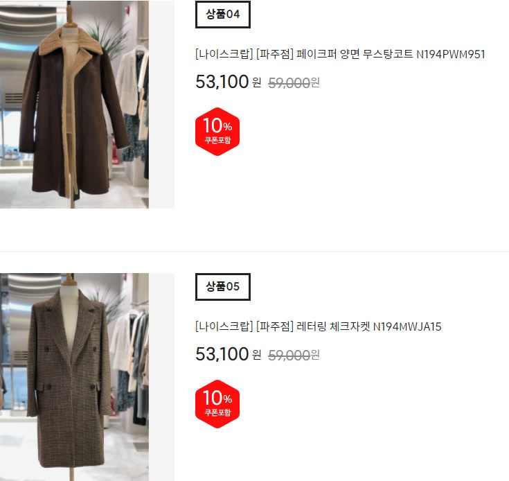 할인 품목 : 코트, 점퍼 등