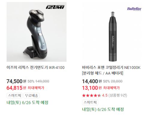 할인 품목 : 드라이기, 전기면도기, 다리미 등