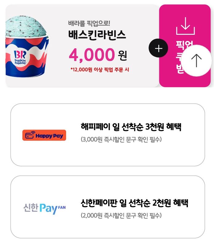 해피오더 배스킨라빈스 최대 7000원 할인 정보 포스팅입니다.