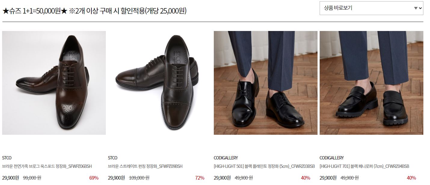 할인 품목 : 구두, 운동화 등