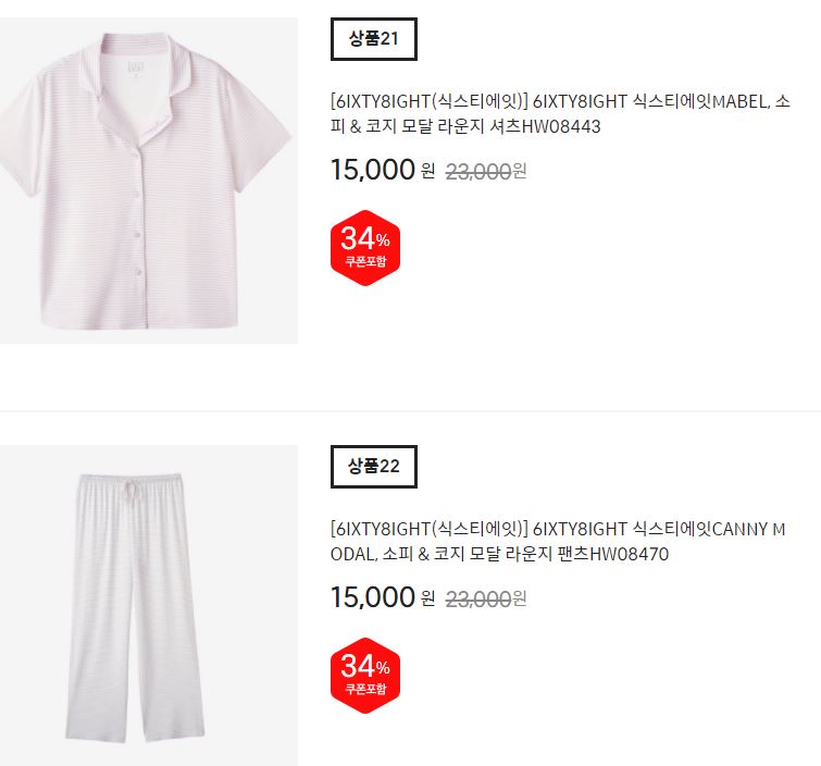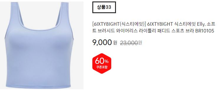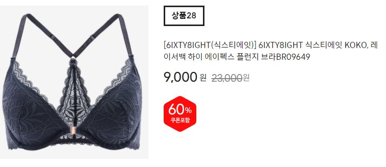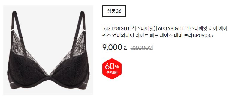할인 품목 : 브라, 잠옷, 캐미솔 등