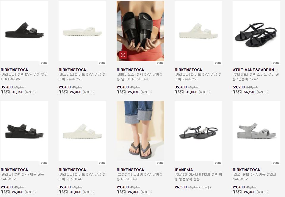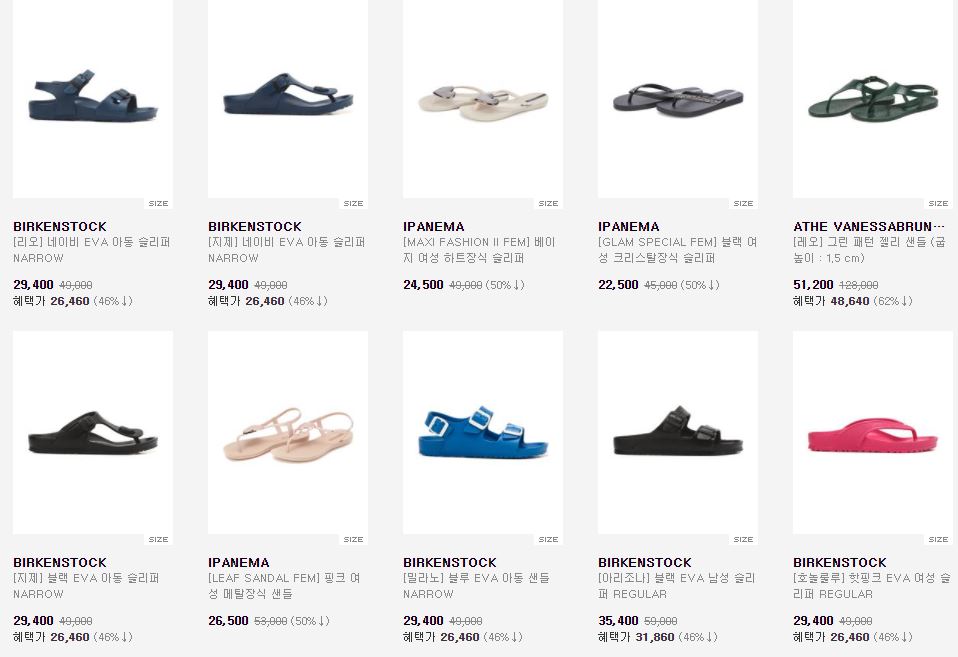 할인 품목 : 샌들, 슬리퍼 등