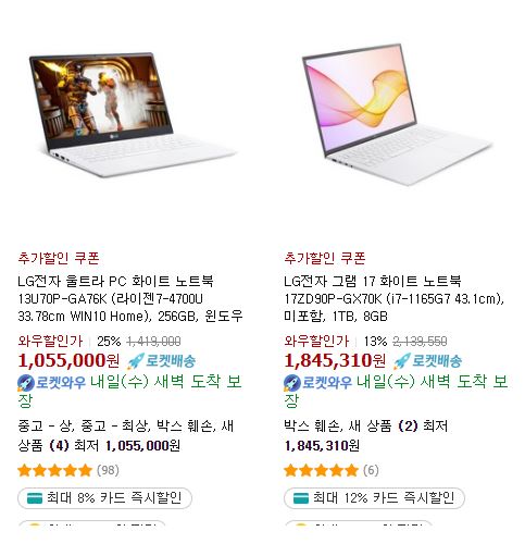 LG전자 노트북 최대 26% 할인 + 카드 최대 13% 할인 정보 [링크]