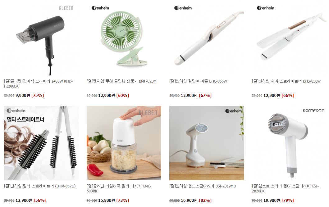 할인 품목 : 드라이기, 미니 선풍기, 스팀 다리미 등