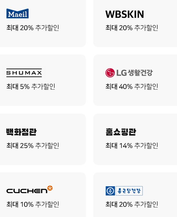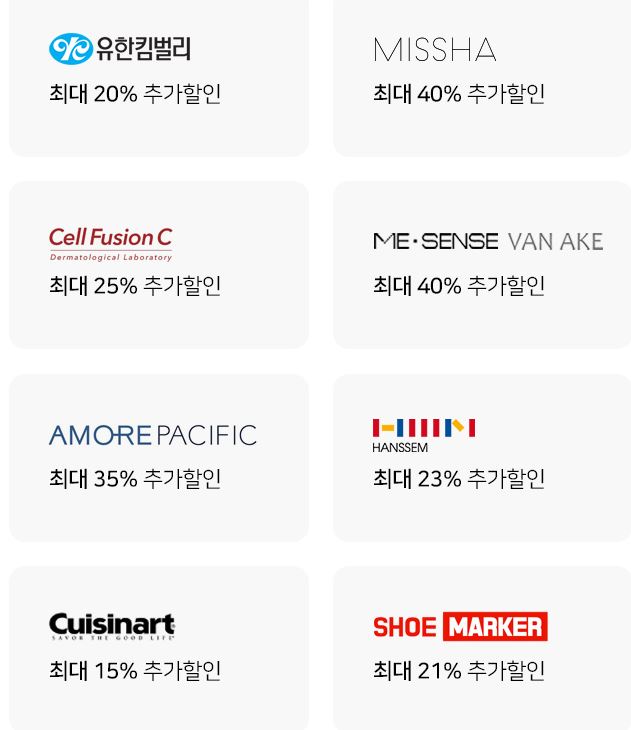 할인 품목 : 의류, 화장품, 식품, 생필품 등