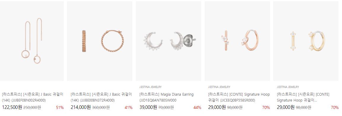 할인 품목 : 목걸이, 귀걸이, 시계 등