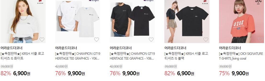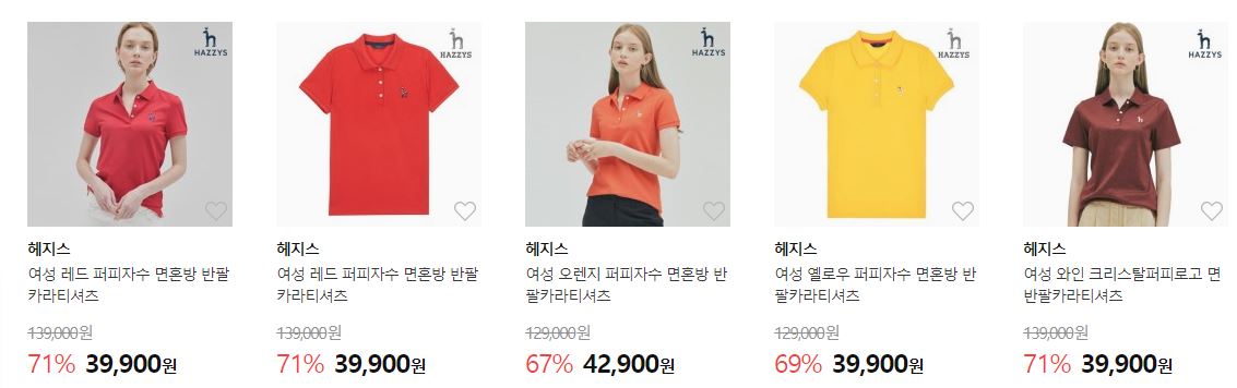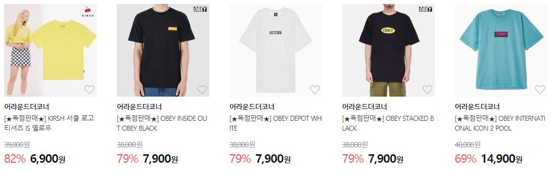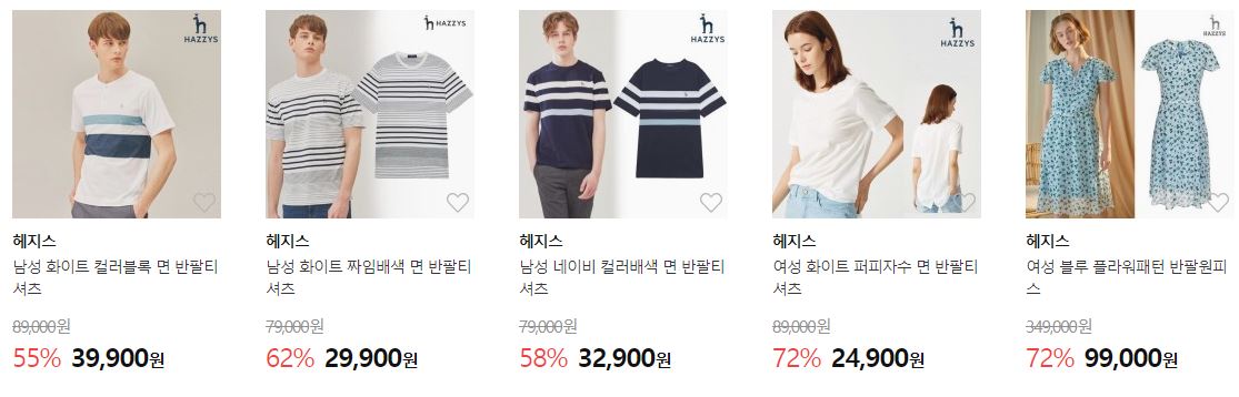 할인 품목 : 티셔츠, 팬츠, 셔츠 등