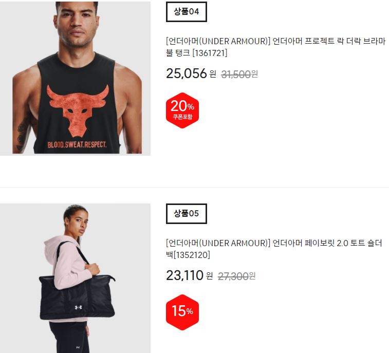 언더아머 다양한 제품을 할인 판매하네요.