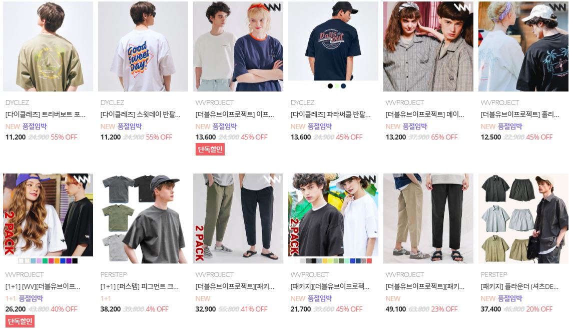 할인 품목 : 티셔츠, 팬츠 등