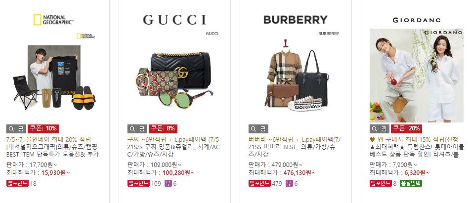 할인 품목 : 의류, 가전, 가구 등
