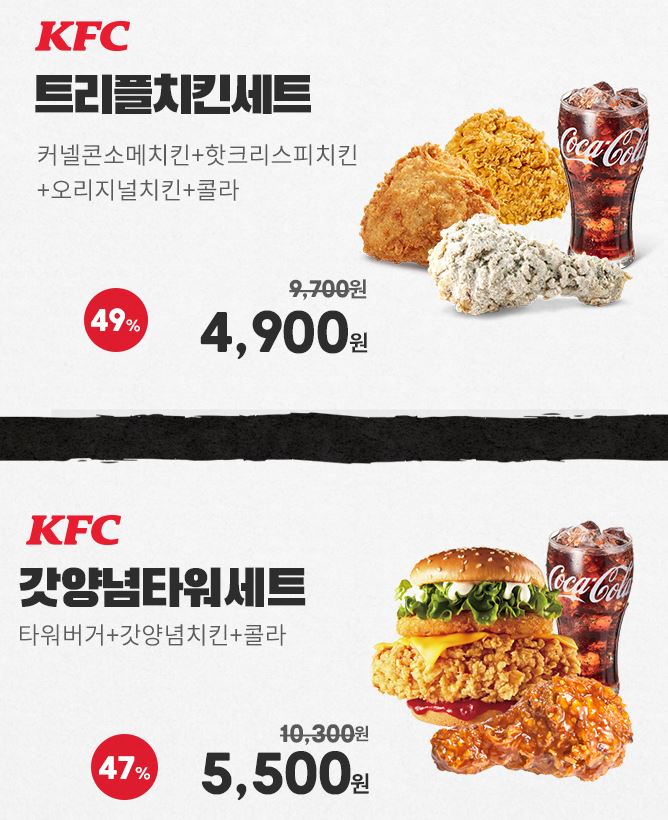 KFC 인기메뉴 3종 최대 50% 할인 정보 포스팅입니다.