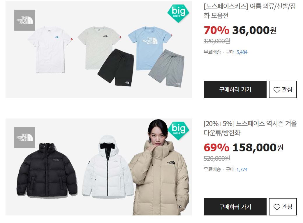 노스페이스 최대 70% 세일 정보 [링크]