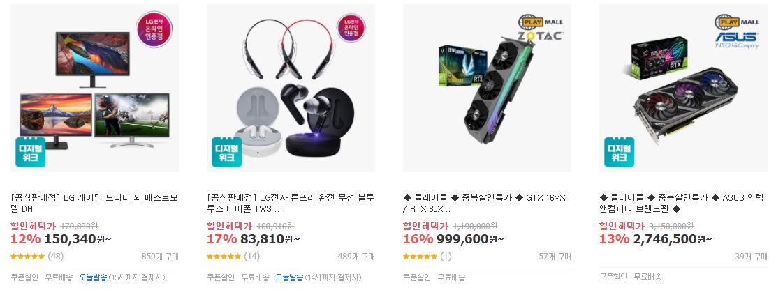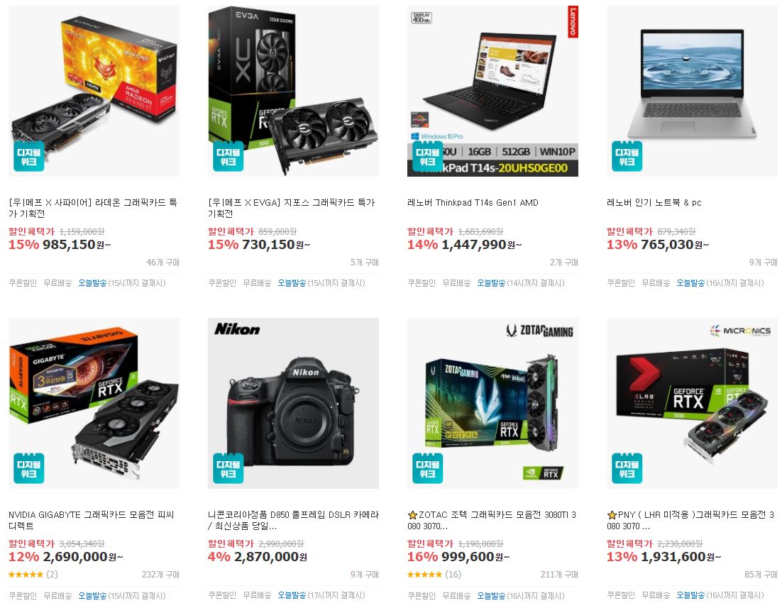 할인 품목 : 그래픽카드, 노트북, 무선 이어폰 등