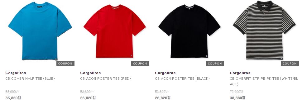 할인 품목 : 티셔츠, 팬츠, 모자 등