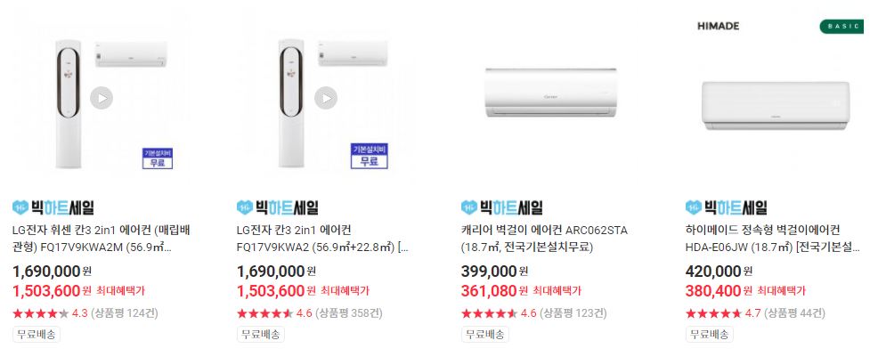 할인 품목 : 에어컨, 선풍기, 냉장고 등