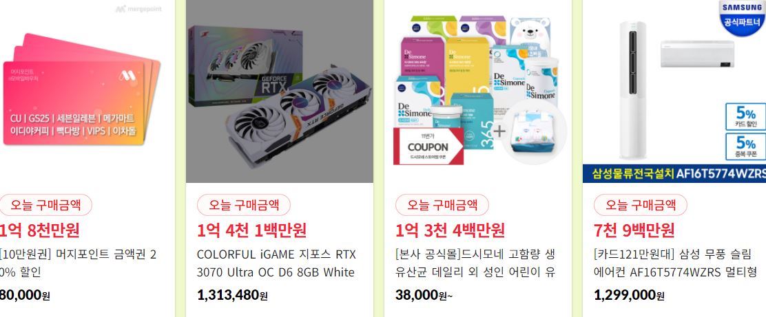 할인 품목 : 의류, 식품, 가방, 가전 등