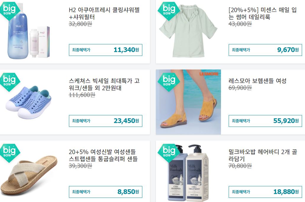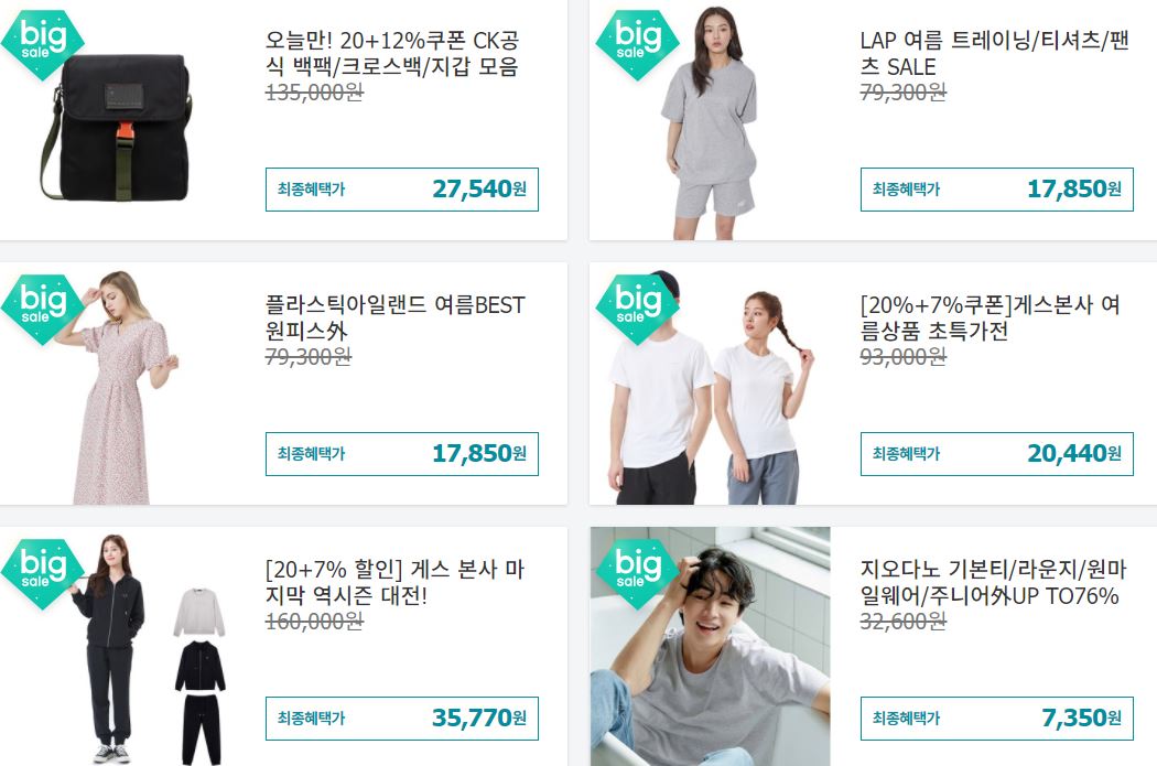 할인 품목 : 의류, 가방, 화장품 등
