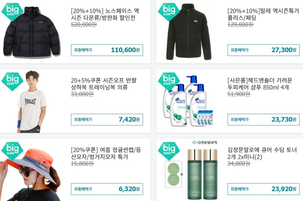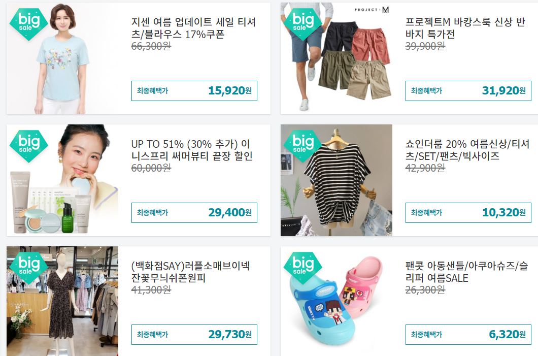 할인 품목 : 의류, 가방, 화장품 등