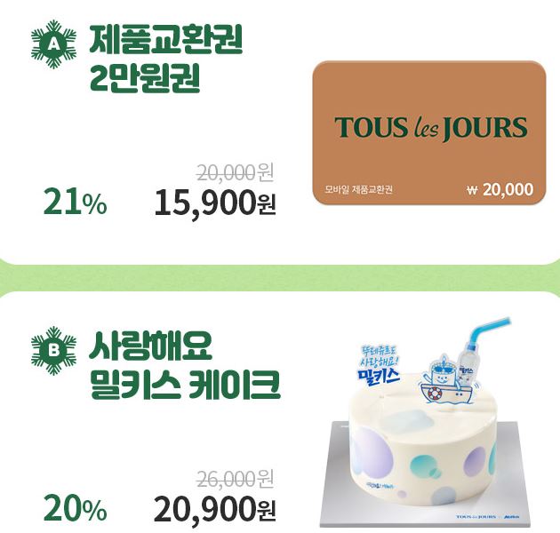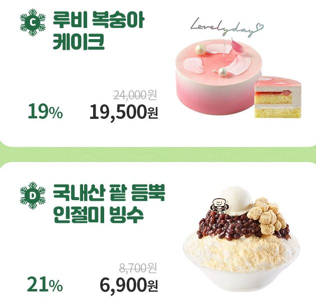 할인 메뉴 : 제품교환권, 빙수 등