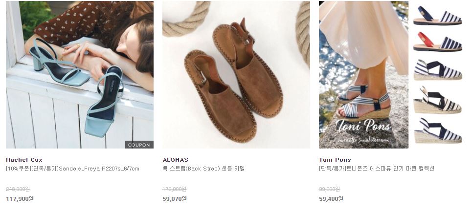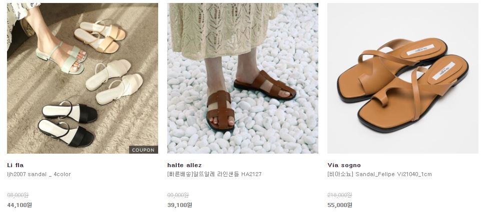 할인 품목 : 샌들, 슬리퍼