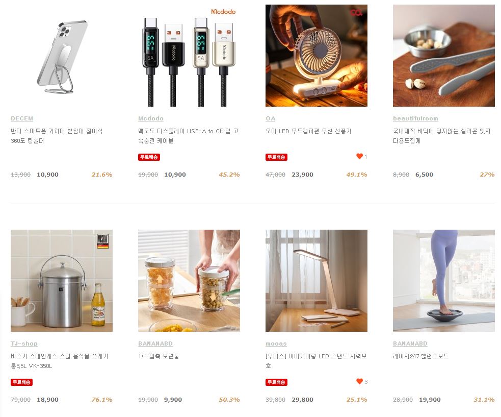 할인 품목 : 서큘레이터, 고속충전 케이블 등