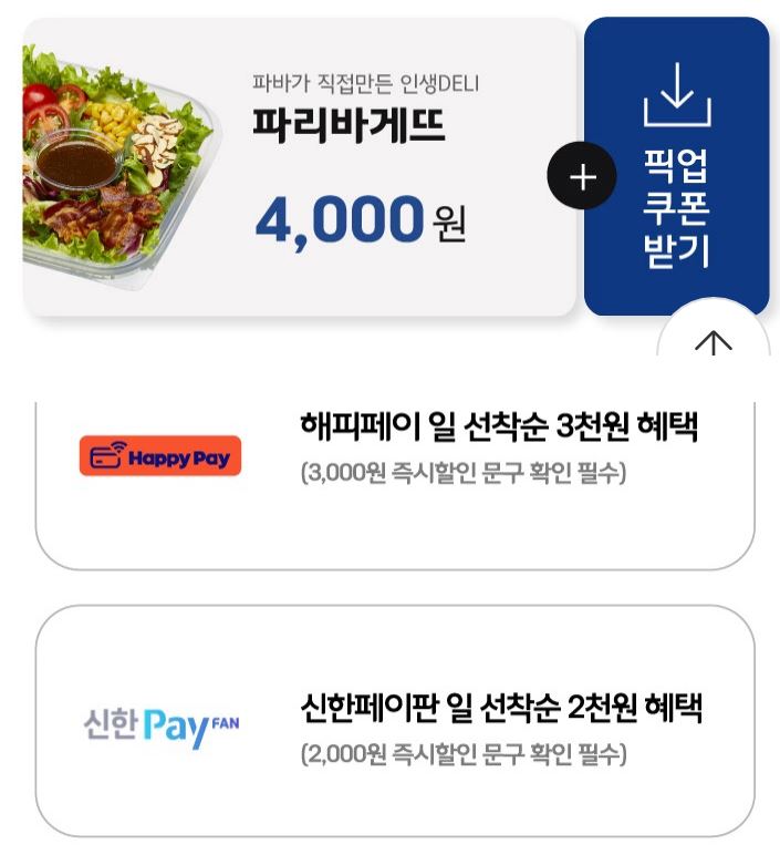 해피오더 파리바게트 최대 7000원 할인 정보 포스팅입니다.