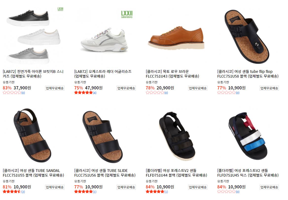 할인 품목 : 운동화, 샌들 등