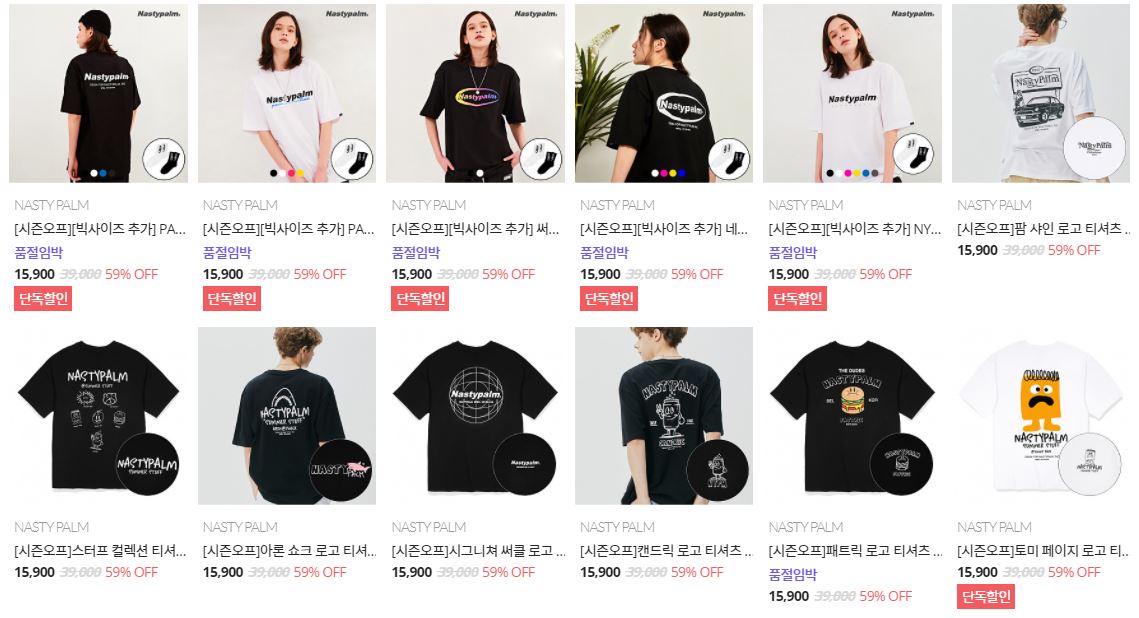 할인 품목 : 티셔츠, 점퍼 등