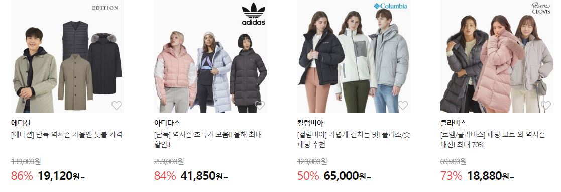 할인 품목 : 점퍼, 자켓, 니트 등
