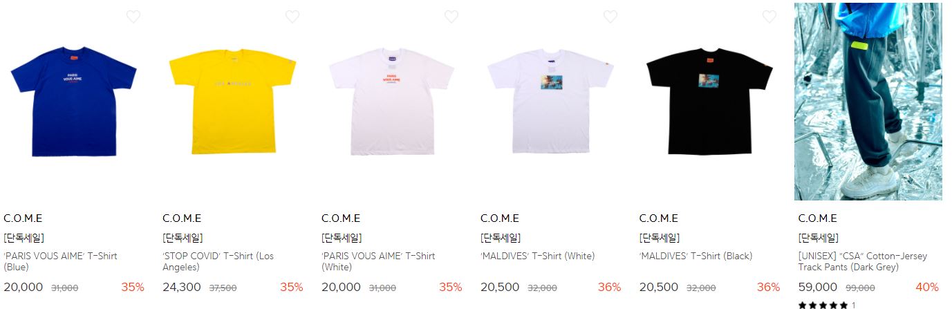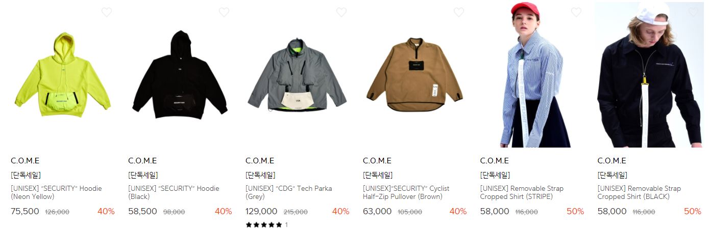 C.O.M.E 다양한 제품을 할인 판매하네요.