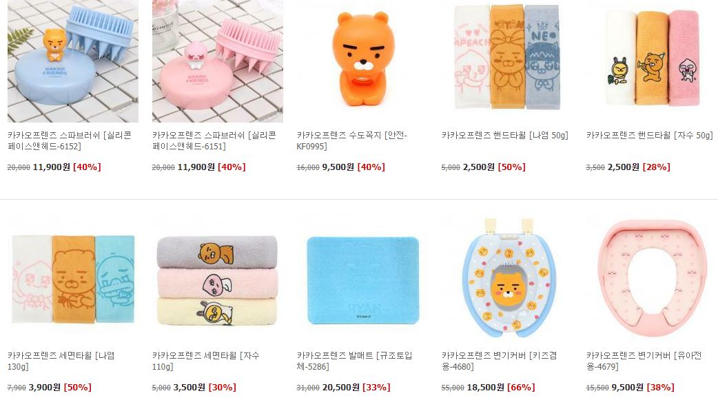 카카오프렌즈 다양한 제품을 할인 판매하네요.