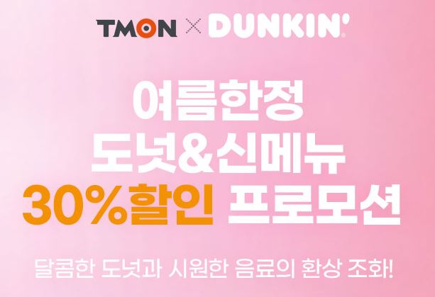던킨 여름한정 도넛 & 신메뉴 30% 할인 정보 [링크]