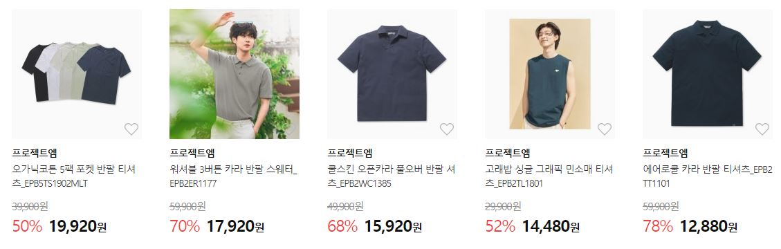 할인 품목 : 티셔츠, 코트, 점퍼 등