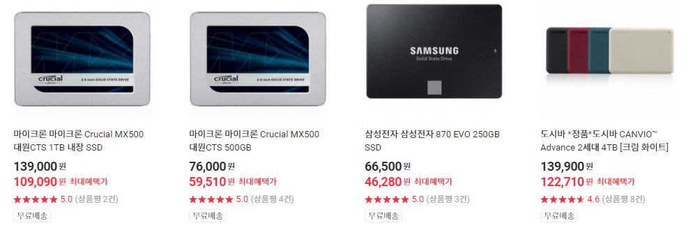 할인 품목 : 노트북 휴대폰, SSD 등