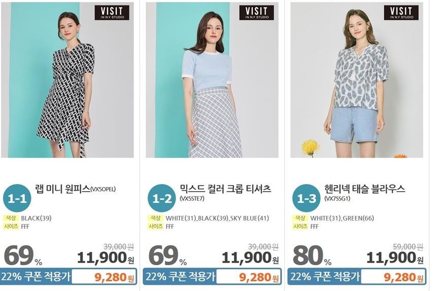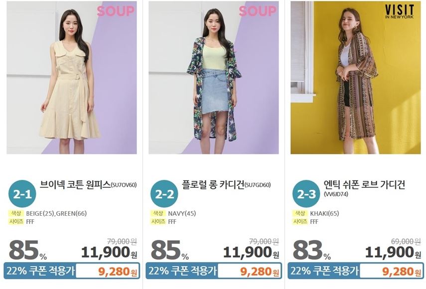 할인 품목 : 원피스, 티셔츠, 가디건 등